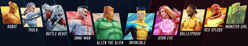 For this beta, players have access to 10 characters from the planned 18-fighter launch roster. The lineup features the expected heavy hitters—Mark Grayson, Atom Eve, Omni-Man, and Battle Beast—alongside familiar faces like Robot, Monster Girl, Bulletproof, Thula, Rex Splode, and Allen the Alien. You’ll be able to bash each other across six different environmental stages.