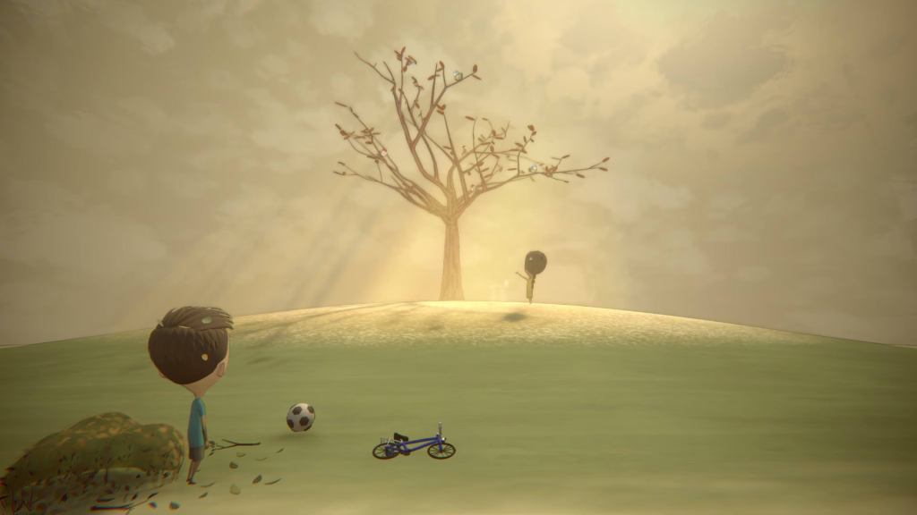 Once you’redone with that you jump on a bike. This serves as a transition between scenes. It’s a lovely feeling to simply steer across a scrolling background to collect golden feathers. There are no fail states. You cannot crash. The narrative is meant to flow uninterrupted. All you have to do is watch the story unfold. It’s a serene, touching story, but It feels less like a traditional video game and much more like turning the pages of a digital pop-up book. Our nephew was in the mood for just that. He enjoyed playing it. And we enjoyed watching him.